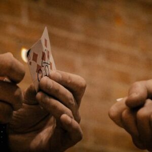 A freely selected playing card is signed, lost in the deck, and then put back in the box on the table. The magician introduces one of their business cards, and writes the name of the spectator on it forging a connection between the business card and the selection. To prove they are connected the magician folds the playing card into a small bundle. The audience can open the box and discover their signed card folded in exactly the same way in the middle of the deck. The kicker ending comes when the business card is held tightly in the audience member’s fist. The playing card is set on fire, and when the audience member opens their hand they discover the business card has been torched in the same way.
